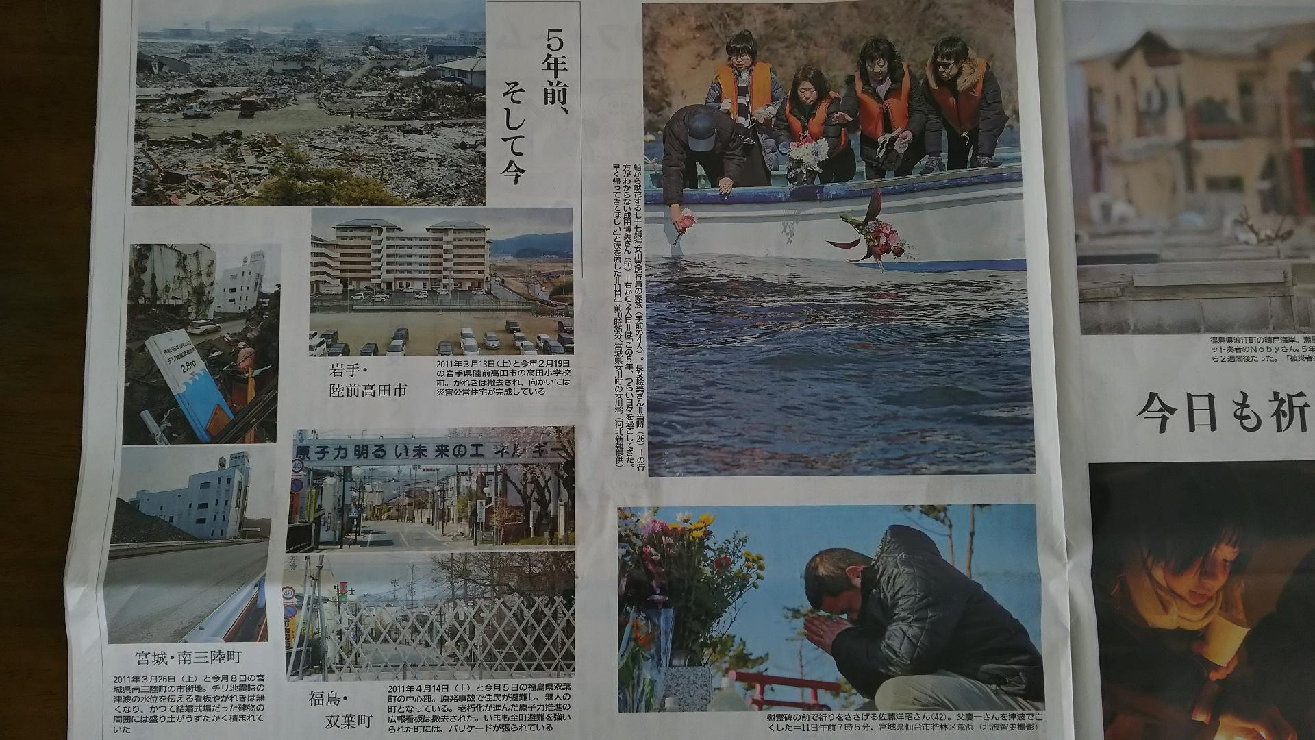 一昨日の3月11日は東日本大震災の発生から5年となる日でありました。