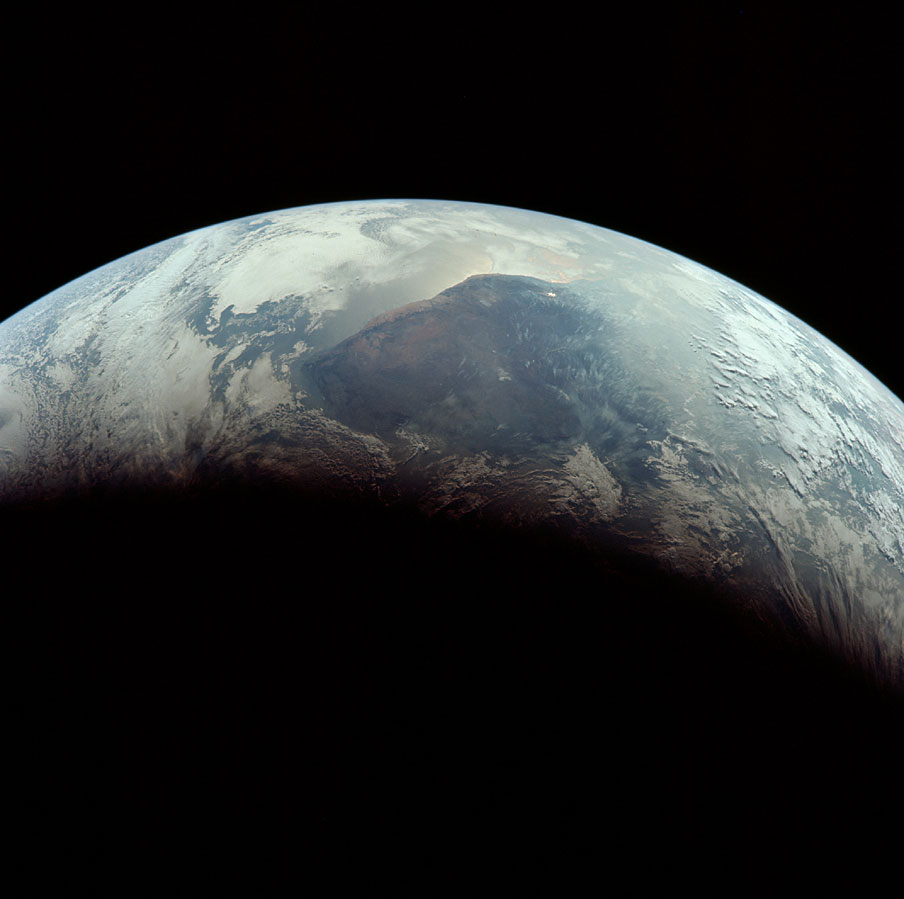 人類初の月面着陸をし、地球に戻るアポロ11号から見えた地球です。