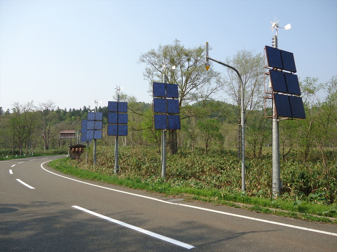 どうも、この先にある道路情報用の電光掲示板の電源を供給しているようなのですが、