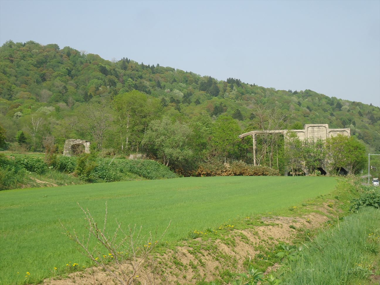 左側だけ見ると、よくありがちな跨線橋跡のような、鉄道がらみの遺跡かなと思ったのですが、